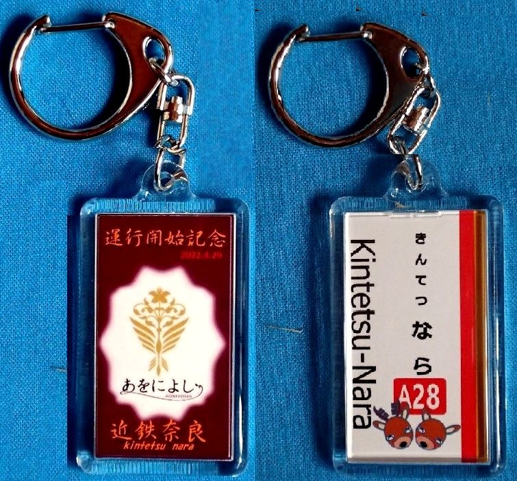 「あをによし」運行開始記念キーホルダー、ガーゼハンカチ