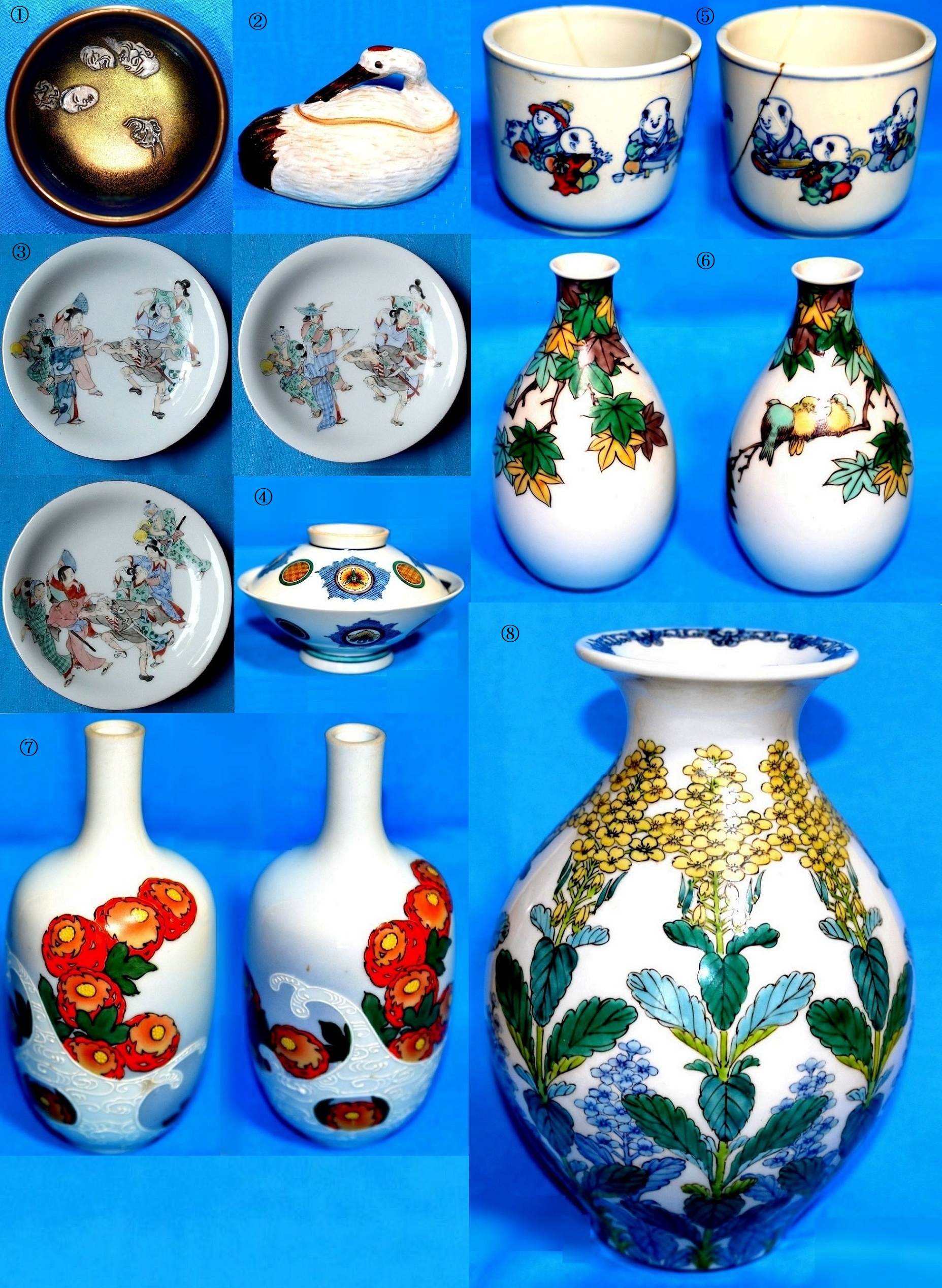 小皿(色絵元禄踊)、鉢