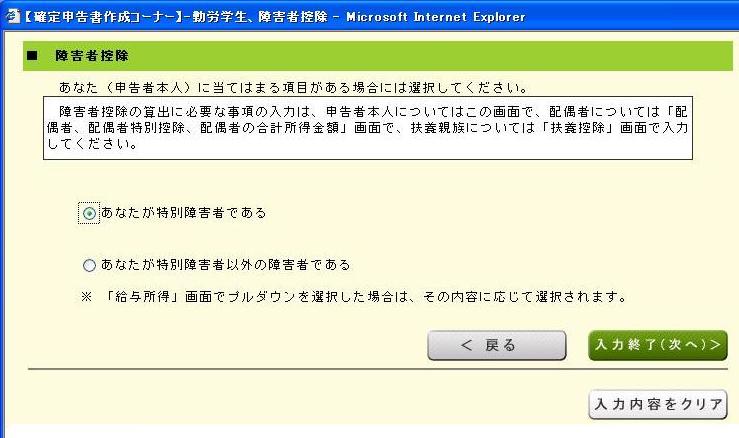 機械投入の場合で申告者が特別障害者の場合は、本人と表示されます。