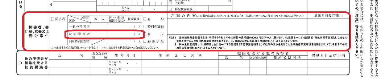 「(20) 障害者控除」欄に、障害者の氏名を記入します。
